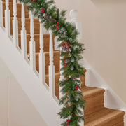 The Christmas Centre Frosted Winterberry 9ft (275cm) Prelit Christmas Garland with Warm White Battery Operated LED Lights